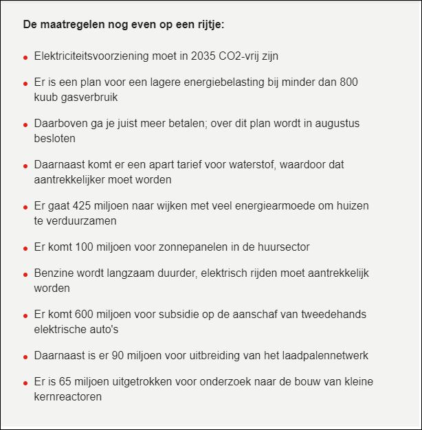 Gisteren regelde ik online een vast energiecontract bij onze energieleverancier. Voor drie jaar voor 168 euro in de maand (inclusief prijsplafond). Het gaat 30 juni a.s. in. Is dat wijs? De prijs van gas ging afgelopen week weer wat stijgen, onder meer door het stijgende verbruik in China. Of dat doorgaat, weet niemand, de prijs kan ook weer dalen. Het blijft gewoon een gok, maar ach, we betalen nu 188 per maand en nu hebben we voorlopig zekerheid.