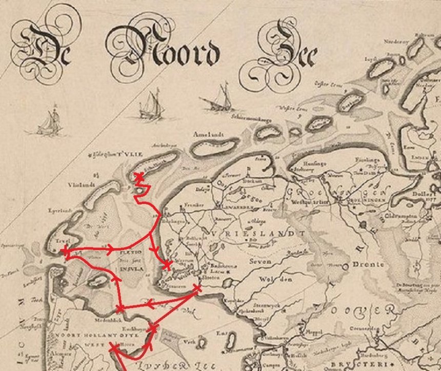 Het gaat lekker snel: 8,9 knopen over de grond (SOG). Ook op het brede Malzwin vliegen we naar het westen, richting Noordzee. De wind trekt aan tot Bf 5 en de zeegang is minder gerieflijk: wind tegen tij. Tussen ons en Texel liggen de Bollen, een grote bank. Scherp let ik op de rode boeien die een doorvaart markeren, het Gat van de Stier geheten. Op het ondiepste gedeelte zie ik nog 1,6 meter onder de kiel en vlak erna zitten we opeens op de brede en diepe Texelstroom. Maar nu hebben we het afgaand tij tegen. De SOG zakt terug naar 5 - 6 knopen SOG, maar het is niet ver meer. Om half twaalf varen we achter een schelpenvisser de haven van Oudeschild in, slaan rechtsaf naar de jachhavens. In de laatste ervan zijn steigers voor oplopende bootlengtes en er is plaats genoeg De voorlaatste is voor 12 - 13 meter jachten en daar vinden we een prima box.